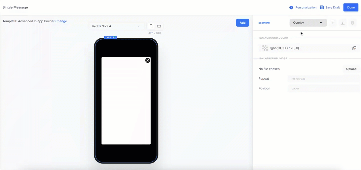 The overlay provides a background for your In-App message, ensuring a seamless, integrated look.