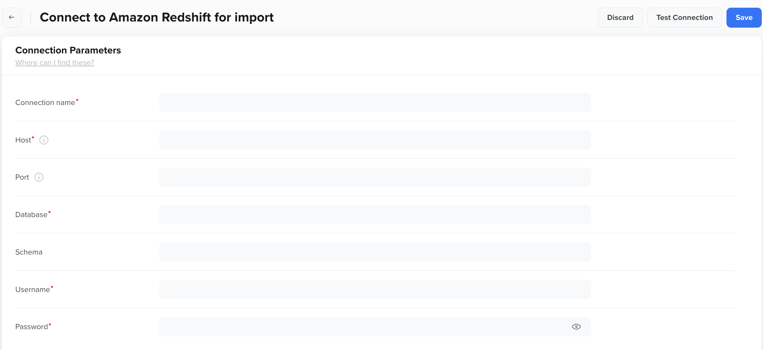 | Host | The endpoint URL of your Redshift cluster, excluding the port and database name. It typically follows the format:<cluster-name>.<unique-id>.<region>.redshift.amazonaws.com. |