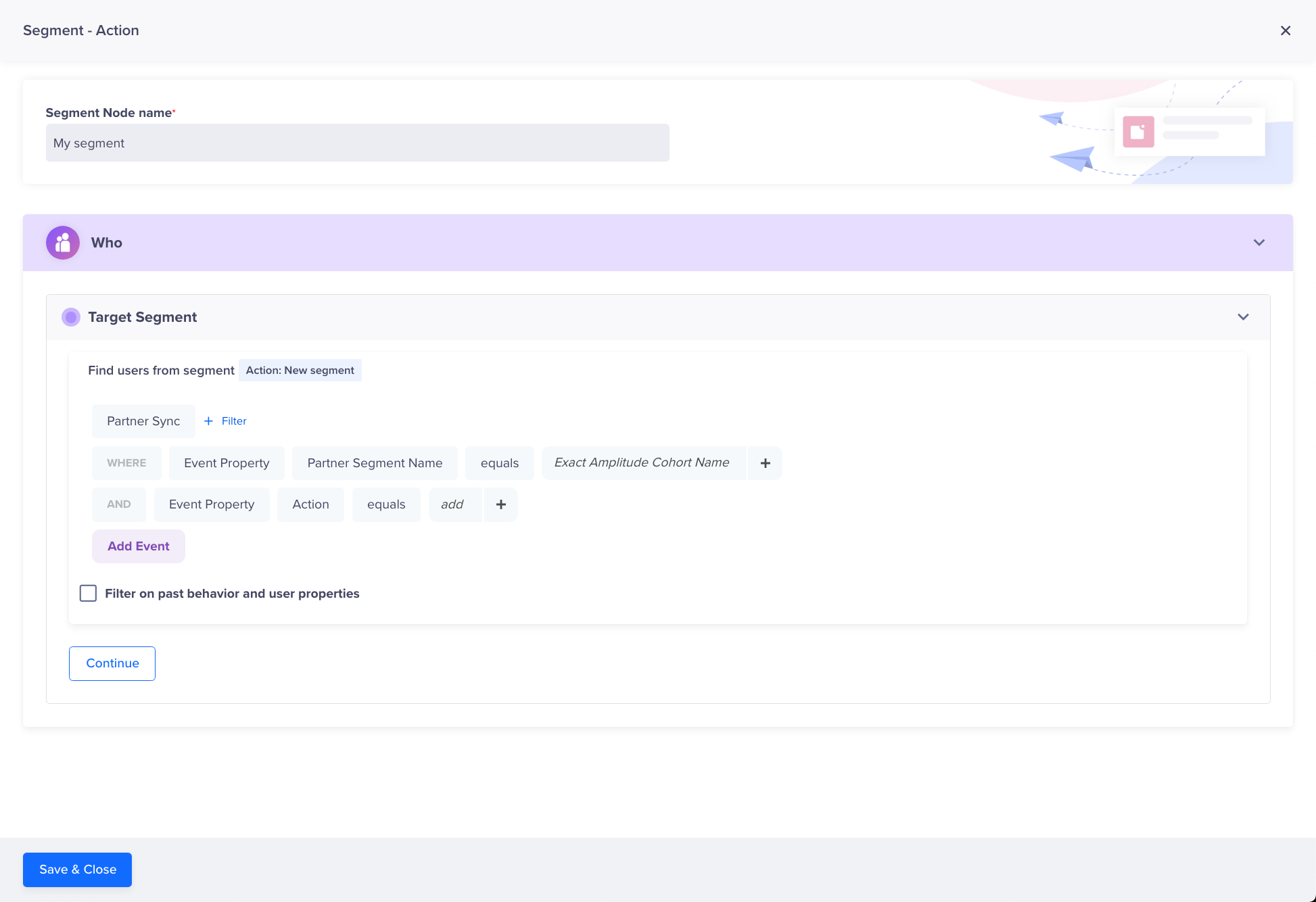 - Click Who and filter the target audience by selecting With user properties > Segments.