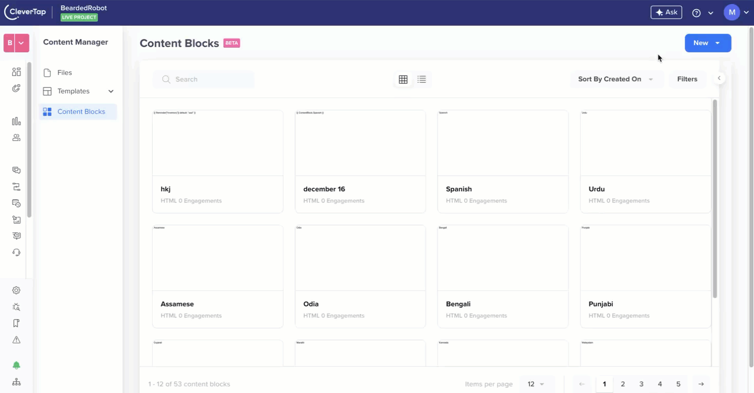 Content Blocks Via APIYou can also create and manage your Content Blocks via the CleverTap Content Blocks API when you want to update or create Content Blocks at scale.