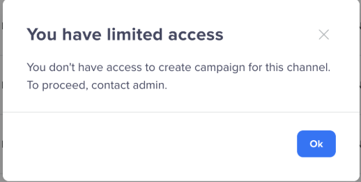 The campaign listing page supports Role-Based Access Control (RBAC) to ensure users can only perform actions that align with their assigned roles and team permissions. A user should first have access to the Campaigns or Journeys in general. From there, their channel-level permissions determine their role within each channel: