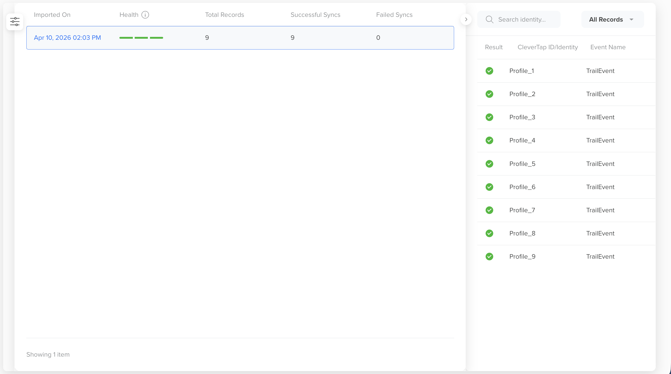 - Prioritize identity errors: Records without a valid identity cannot be linked to a user profile in CleverTap and will not be usable for segmentation or engagement. Resolve identity-related failures before addressing property-level errors.