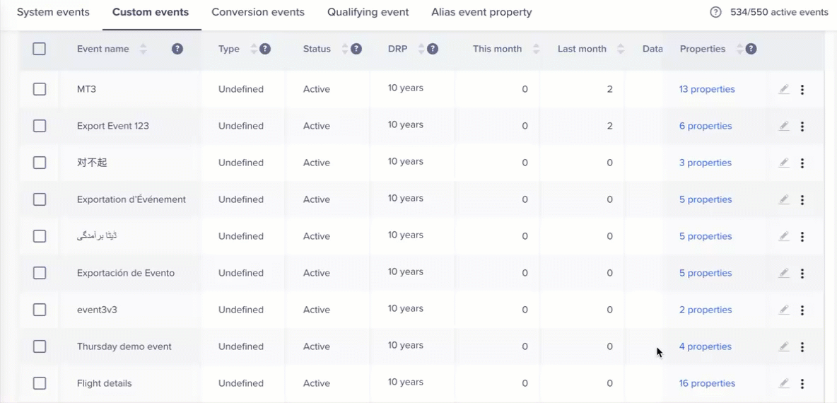 There are some specific validations when creating events and properties. For more information, refer to Platform Considerations.